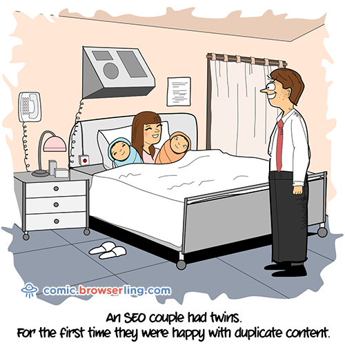 A SEO couple had twins. For the first time they were happy with duplicate content.
