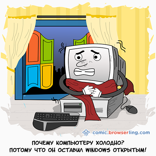 Почему компьютеру холодно?... Потому что он оставил Windows открытым!
