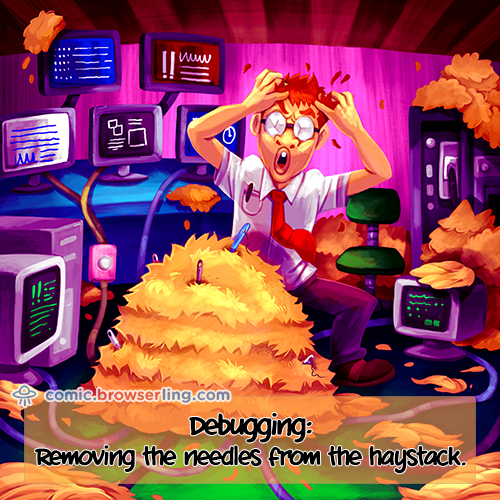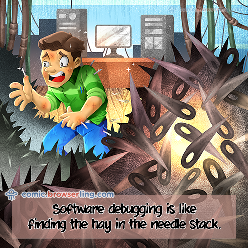 Software debugging is like finding the hay in the needle stack.